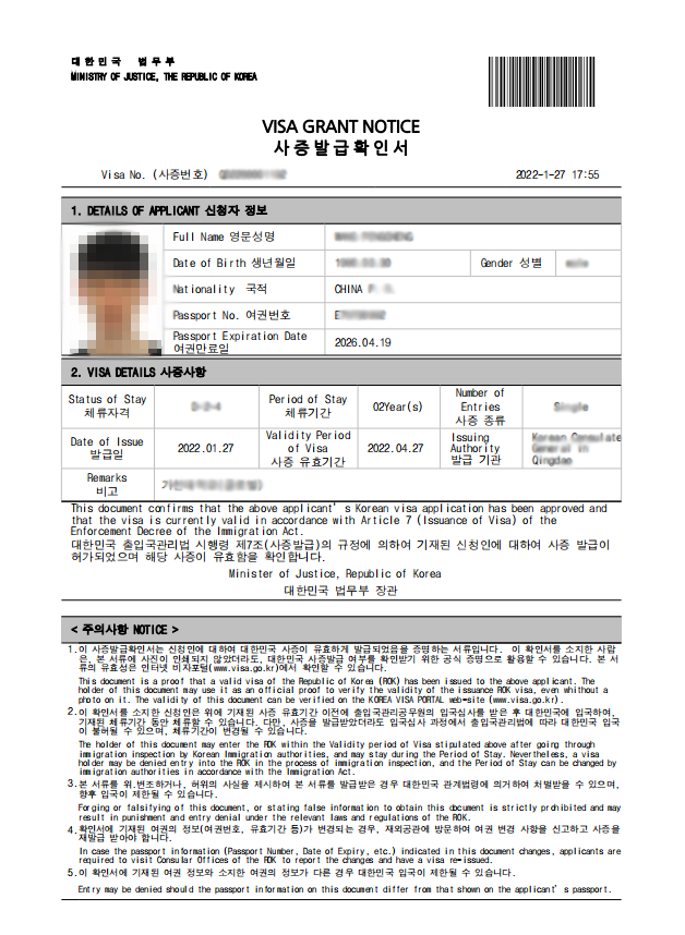 日照市國際交流服務(wù)中心有限公司已成功辦理赴韓簽證!