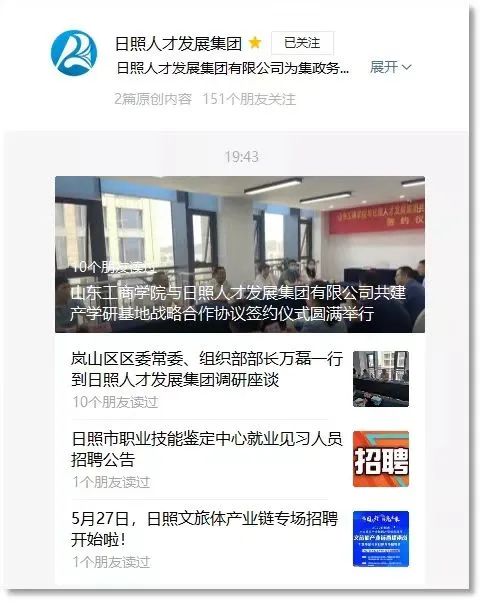1.關(guān)注“日照人才發(fā)展集團(tuán)”微信公眾號;