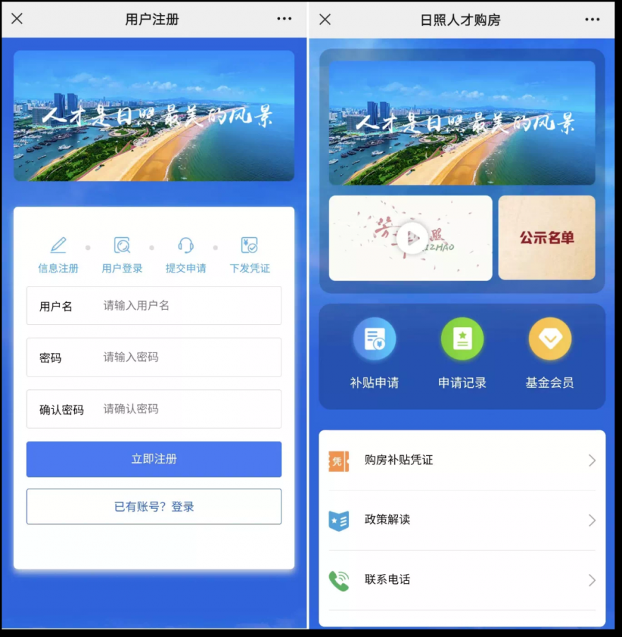 申請人在微信中,搜索“日照人才發(fā)展集團(tuán)”,點(diǎn)擊“人才購房”,進(jìn)入補(bǔ)貼申領(lǐng)頁面。隨后,點(diǎn)擊頁面中的“補(bǔ)貼申請”,按照提示步驟即可完成憑證申領(lǐng)。