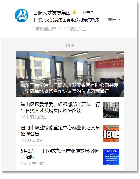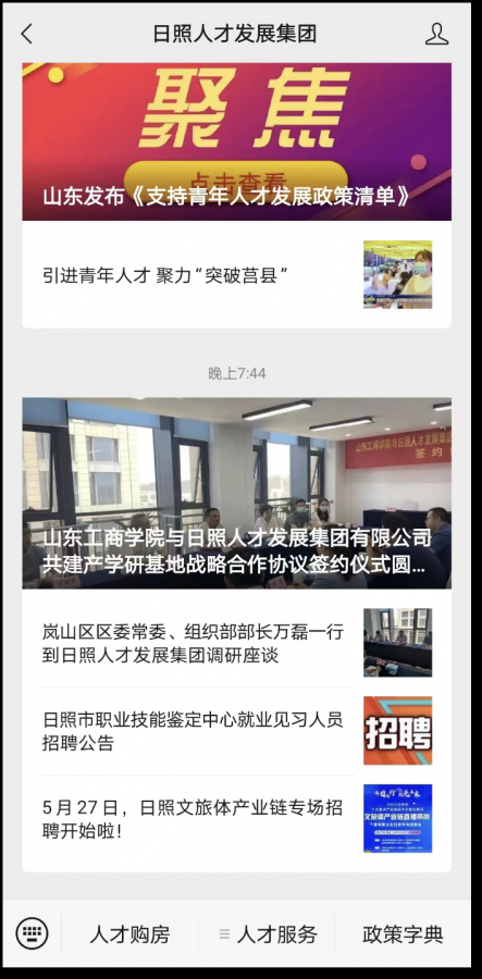 1.關(guān)注“日照人才發(fā)展集團(tuán)”微信公眾號(hào);
