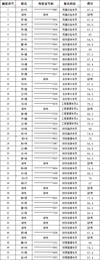山東種業(yè)集團(tuán)魯南有限公司公開招聘工作人員,經(jīng)過簡章發(fā)布、網(wǎng)上報名、資格初審、現(xiàn)場面試等環(huán)節(jié)。于2022年11月21日進(jìn)行面試工作,現(xiàn)將面試人員成績公示如下,公示期限自2022年11月22日至2022年11月28日,公示期內(nèi)如有異議,可向山東種業(yè)集團(tuán)魯南有限公司反映,聯(lián)系電話:0633-6107701 。