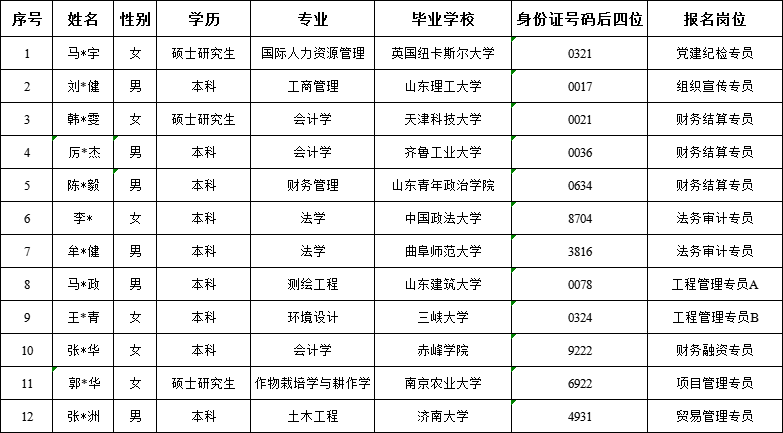 2022年山東種業(yè)集團魯南公司公開招聘工作人員錄用人員名單公示