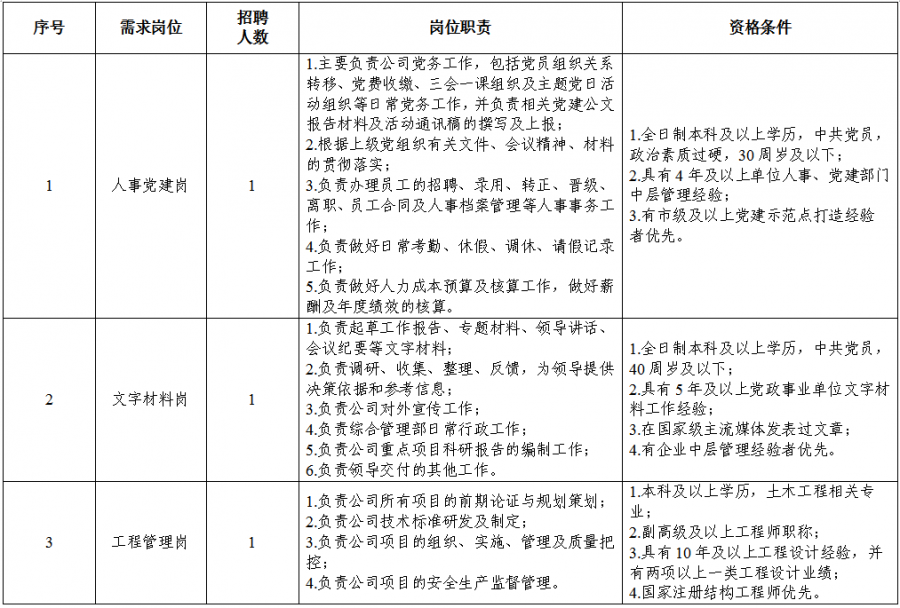 本次公開(kāi)招聘3個(gè)崗位,具體招聘崗位及要求詳見(jiàn)附表。